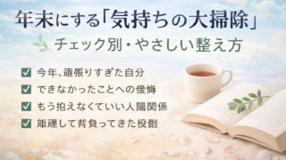 年末は、家だけでなく心も整えるタイミング。今年、頑張りすぎた自分や手放していい想いを、やさしく整理して新しい年を迎えませんか。